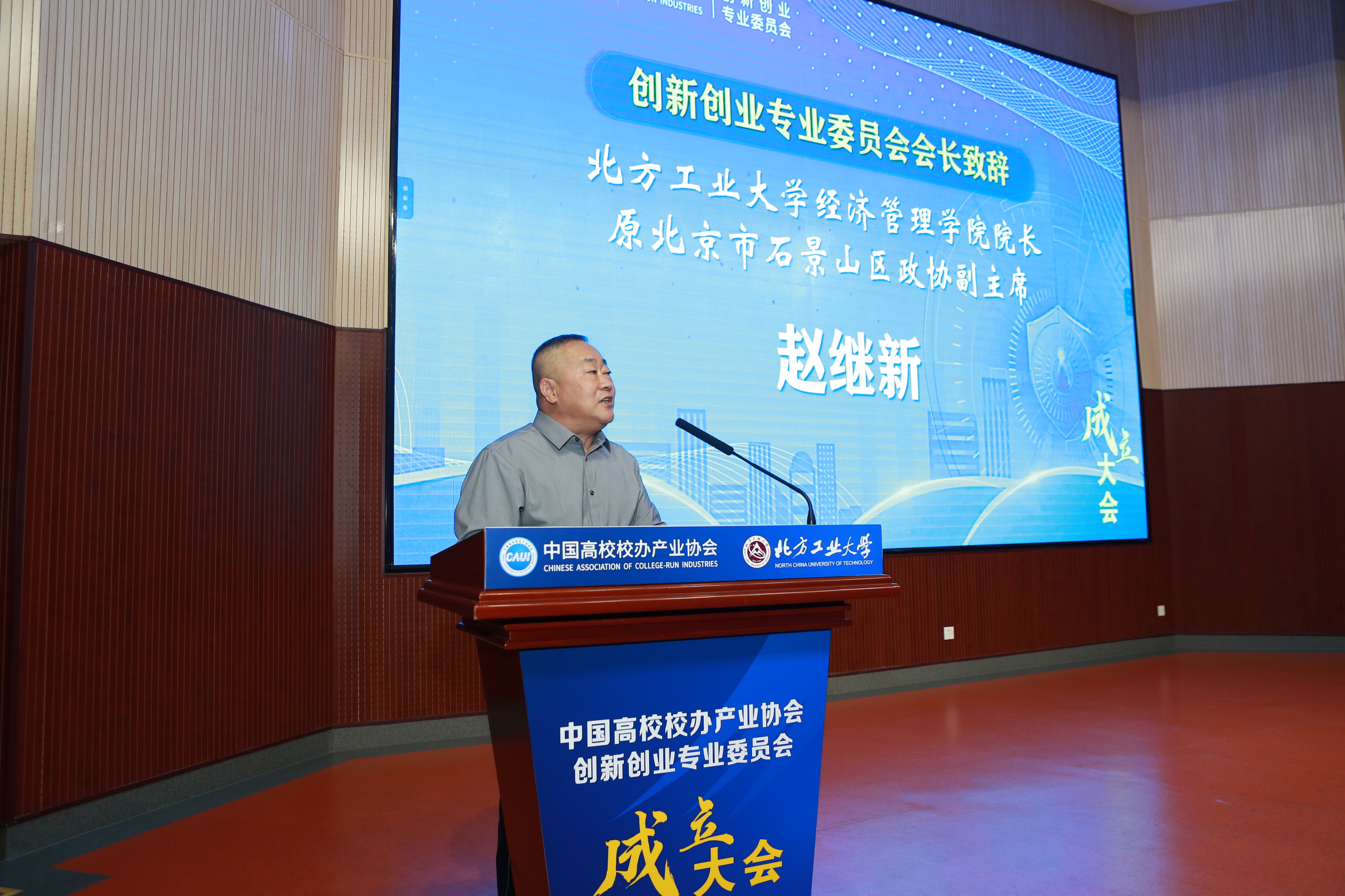 pa电子官方网站院长赵继新发表会长致辞。赵继新介绍了专委会的核心定位、工作目标和发展规划,并表示要在协会的领导下加强顶层设计、坚持问题导向、深化校企协同创新、营造良好的创新创业生态,不断提高创新创业专委会的资源优化配置和科技创新服务能力,助力创新型国家建设。