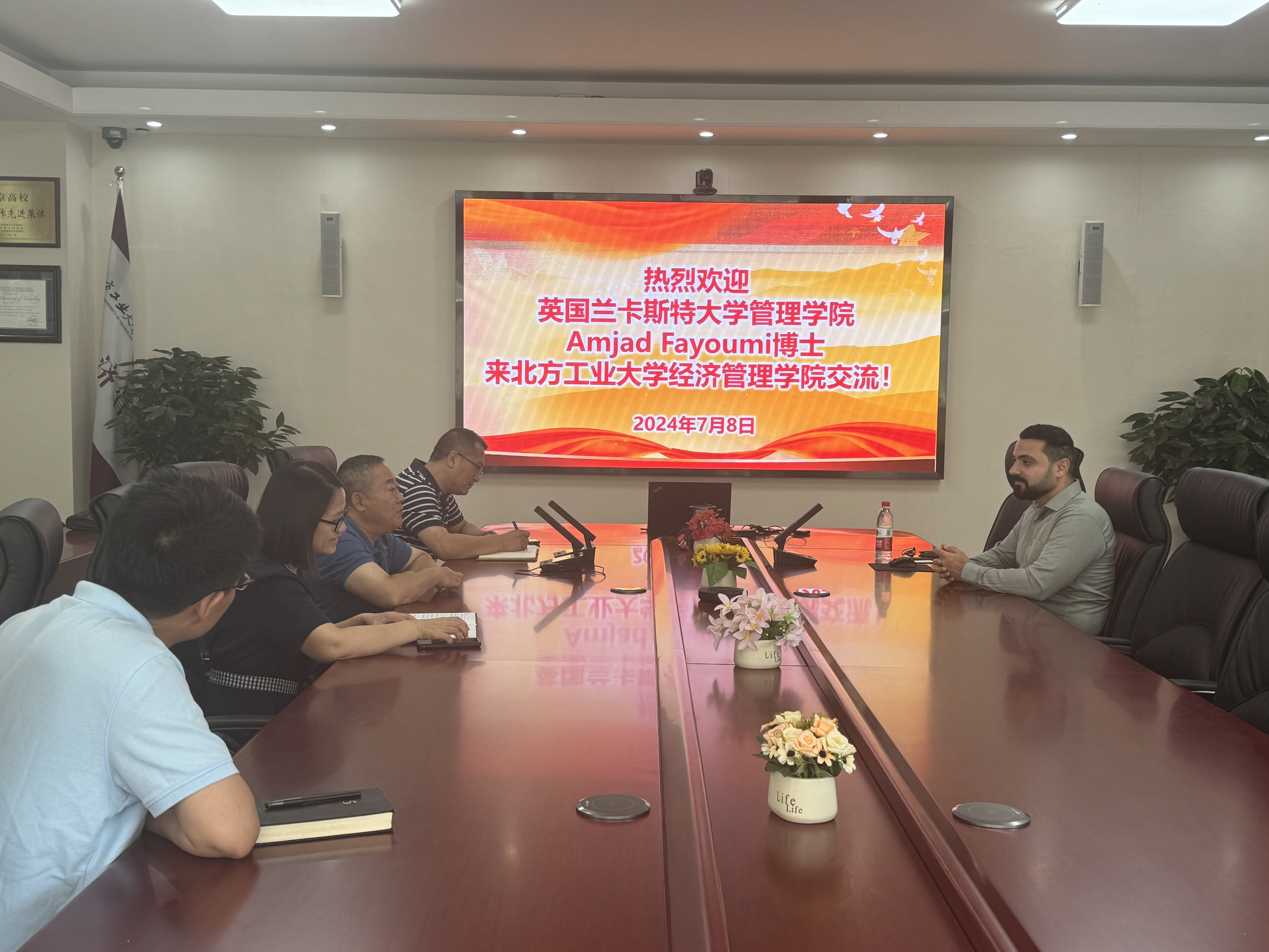 2024年7月8日上午,英国兰卡斯特大学管理学院Amjad Fayoumi博士到pa电子官方网站进行交流,学院院长赵继新、副院长孙强、副院长蒋贵凰及教师代表王学成博士参加了交流。