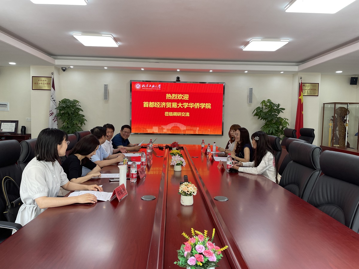 6月15日上午,由首都经济贸易大学华侨学院教学副院长兰君带队,华侨学院工商管理系主任王妍和管理系教师卜丽雅等三位老师来校进行专业建设交流。pa电子官方网站会计系主任王志亮、实验中心主任牛天勇、会计系教师于国旺、黄晓蓓和陈晓艳等五位老师参与交流研讨。双方主要围绕ACCA课程建设、课程思政建设、商科专业课程实践及实训课程体系建设等方面展开了深入交流。