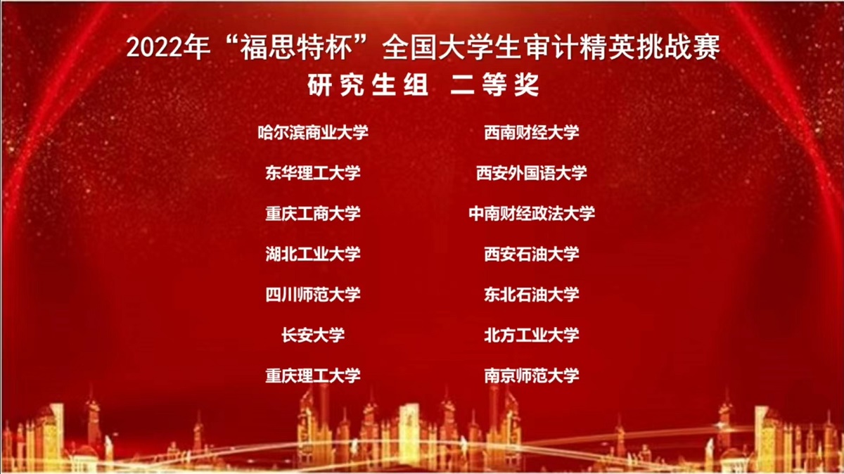 “福思特杯”全国大学生审计精英挑战赛是目前财会审计类专业具有较大影响力的全国性赛事之一。本次大赛由中国审计学会审计教育分会主办、南京审计大学政府审计学院承办。大赛的目的是积极探索审计专业发展的新视域、新路径和新方法,创新实现大数据、区块链等信息技术与审计专业教育的深度融合,培养适应社会经济发展需要的高素质、专业化审计人才。大赛至今已成功举办四届,累计吸引了来自全国29个省市的200多所高校,近5000名师生参与。pa电子会计系是第二次派出研究生队伍参加此项比赛,并首次取得二等奖的佳绩。