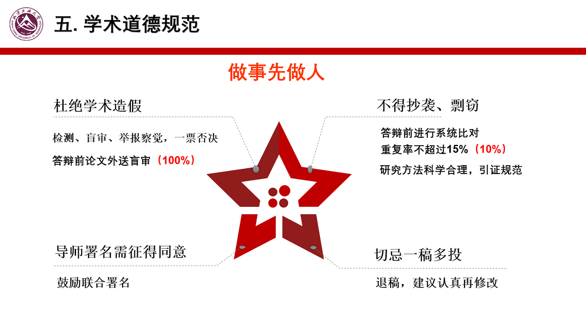 最后,她对新入学的研究生开展学术道德教育。通过解读学校研究生学术要求和学术规范,警示大家勿碰学术造假抄袭等红线,告诫同学们“做事先做人”,务必在研究生及今后的学术工作中,始终做到遵规守纪,恪守学术道德,维护公平、干净的学术环境。