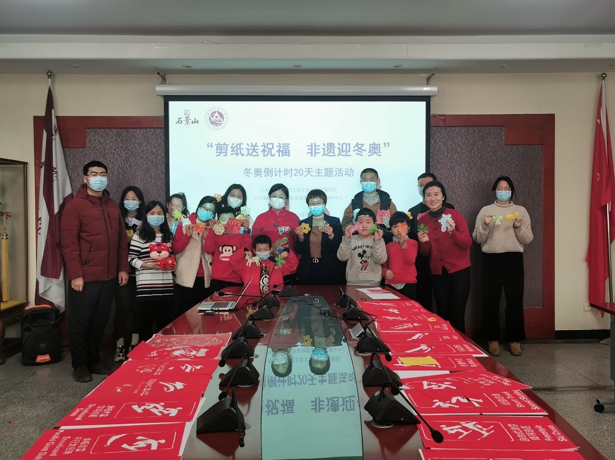 1月15日,在距离2022年北京冬奥会倒计时20天之际,pa电子官方网站特举办主题为“剪纸送祝福 非遗迎冬奥”冬奥倒计时20天主题活动暨留校学生迎新春活动,活动得到了石景山区非物质文化遗产保护中心的大力指导与支持。学院党委副书记赵洁、辅导员吴芳、张泽圣以及留校的冬奥志愿者一同参与了此次活动,石景山区剪纸第四代非遗传承人杨秀英老师应邀参加了此次活动。