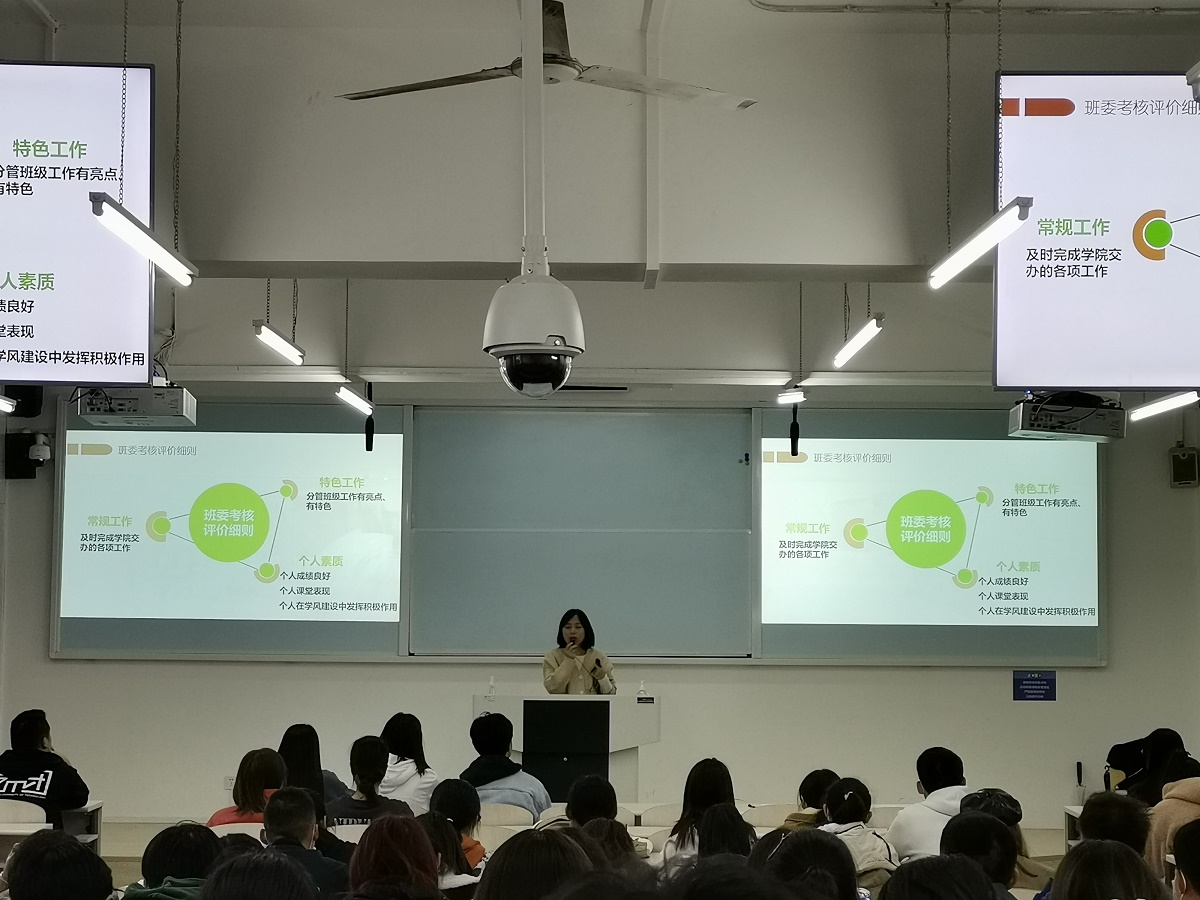 首先,吴老师从常规工作、课堂表现、特色工作三个方面,详细介绍了经管学院本科生班委工作考核评价细则。