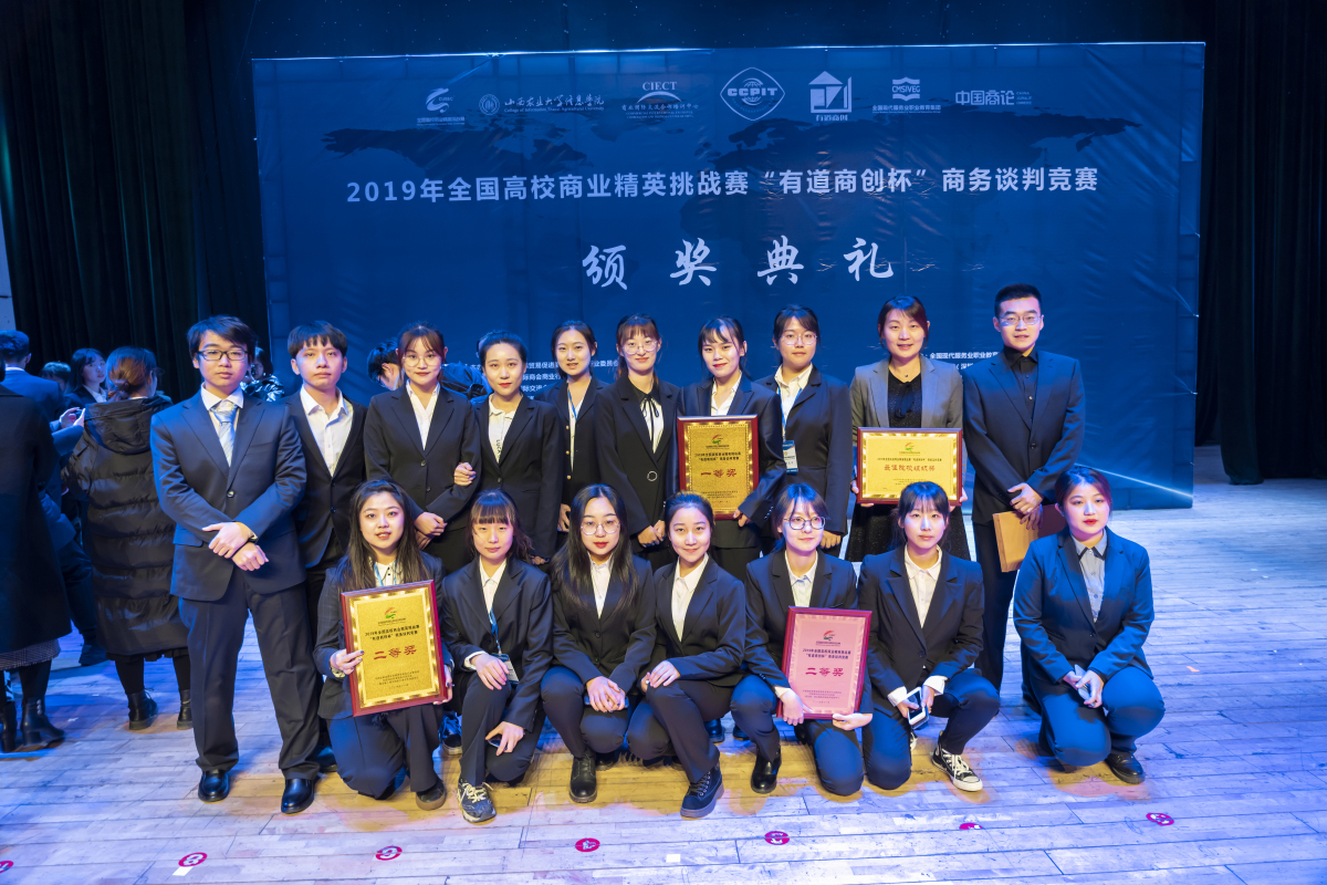 2019年11月29日至12月1日,由pa电子pa电子官方网站学生组成的四支代表队参加了在山西农业大学信息学院举行的2019年全国高校商业精英挑战赛“有道商创杯”商务谈判竞赛。经过两天的激烈角逐,pa电子四支代表队最终以优异成绩分别荣获团队一等奖一项、团队二等奖三项,同时荣获最佳组织奖。