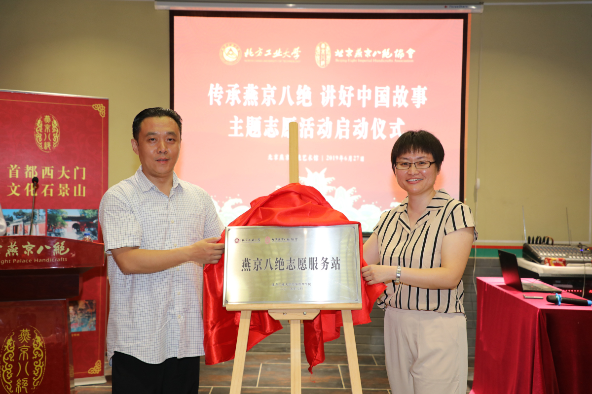 6月27日上午,“传承燕京八绝 讲好中国故事”——主题志愿活动启动仪式在北京燕京八绝艺术馆隆重举行。北京燕京八绝艺术馆馆长柏群、常务副馆长杨宁、北京市工艺美术玉雕大师郭卫军、北京市工艺美术特种漆艺大师刘博闻、pa电子官方网站党委副书记赵洁、学院团委书记刘明阳出席本次活动。启动仪式由燕京八绝艺术馆常务副馆长杨宁主持。