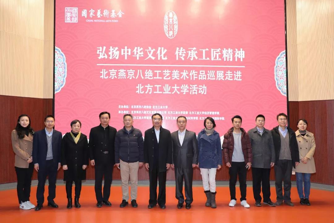 为了弘扬我国的传统文化,让学生近距离感受并传承工匠精神,由北京燕京八绝协会和pa电子联合主办的“北京燕京八绝工艺美术作品巡展”活动11月23日中午在文化会堂启动。pa电子党委书记郑文堂、石景山区文联主席郭明、石景山区旅游协会会长闫可以及学校相关部门和学院的负责人一同参加了启动仪式。与此同时,工美大师和传承人万紫女士、于静女士、郭卫军女士、柏群先生也莅临现场。仪式由pa电子团委书记何有华主持。