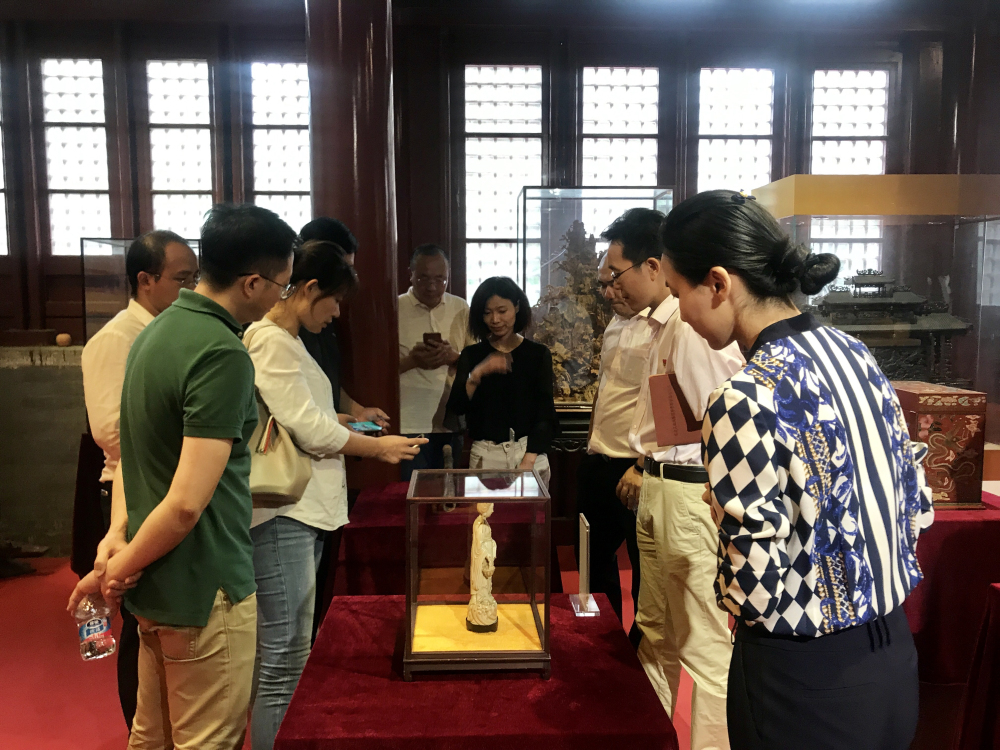 首先,我院支部书记在杨宁主任带领下参观了解了燕京八绝艺术馆,杨宁副馆长介绍了国家级非物质文化遗产燕京八绝的历史文化、技艺传承和创新发展情况,带领大家系统了解了北京传统非遗事业的发展脉络。