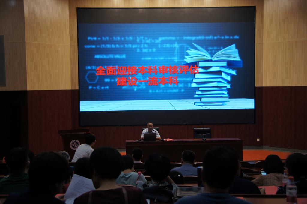 赵继新院长作题为《全面迎接本科审核评估,建设一流本科》的动员讲话,号召学院全体教师高度重视,按一流本科建设要求认真对待,做好每一个细节;要求老师们在深度推进学科建设的过程中,继续凝练团队,多出高水平成果,全面提升学科建设水平;强调从师德建设、学风建设与校风建设三个方面持续改进思想政治工作;并对开学期间的相关工作做出安排。