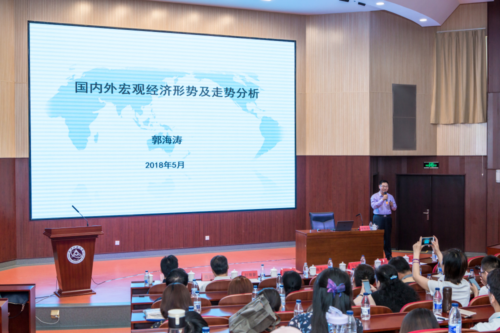 5月22日,pa电子官方网站2018年“毓秀青年”中国特色社会主义理论培训班在文化会堂开班,此次邀请中国石油大学工商管理学院郭海涛院长作了题为《国内外宏观经济形势及走势分析》的专题辅导报告,pa电子官方网站“毓秀青年”中国特色社会主义理论培训班教师及部分党支部学生党员参加了这次学习。