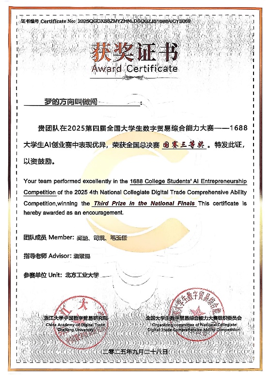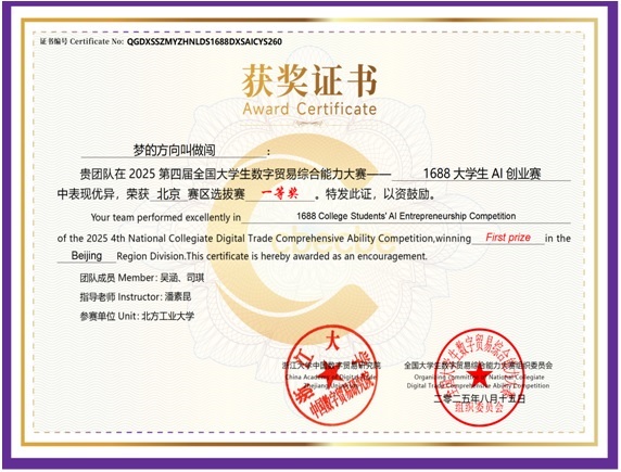 近日由浙江大学中国数字贸易研究院主办、全国大学生数字贸易综合技能大赛组织委员会承办的第四届全国大学生数字贸易综合技能大赛总决赛在浙江大学圆满落幕。pa电子学生吴涵、司琪、毛玉佳组成的代表队获得北京赛区一等奖、全国总决赛三等奖。