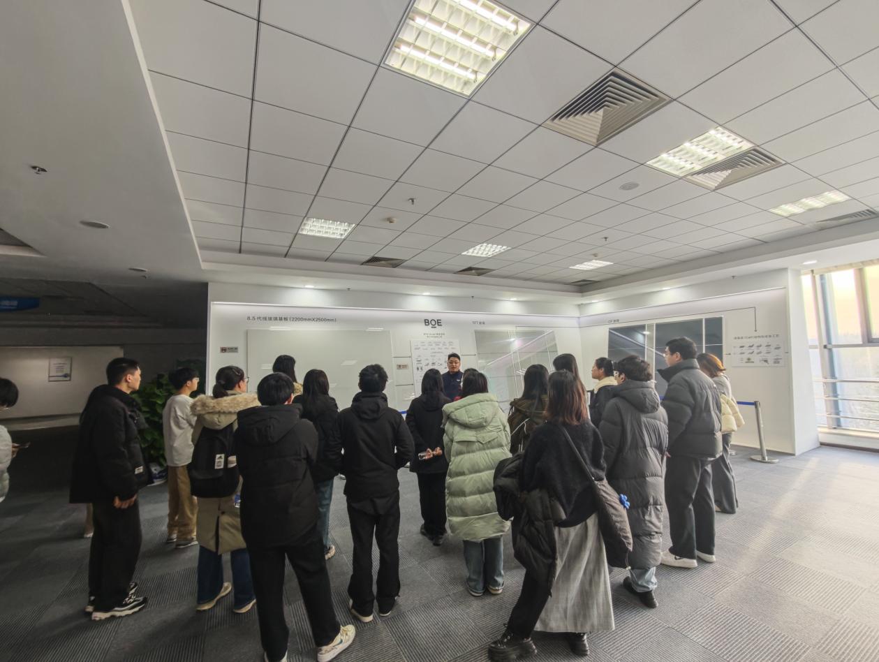 12月1日下午,pa电子官方网站组织师生赴京东方开展研学活动。本次活动由学院副院长蒋贵凰与应用经济学教授刘颖带队,工商管理学、应用经济学近二十名研究生参加活动。师生一行通过参观京东方前沿产品体验、技术工艺解析与智能化生产线观摩,深入感受科技革新力量,并围绕数智时代的人才挑战展开思考。
