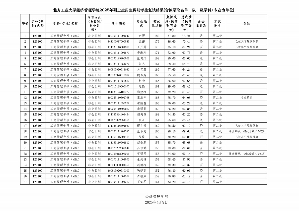 下一条: pa电子官方网站2025年硕士生招生调剂考生复试结果——工商管理专硕(MBA)全日制