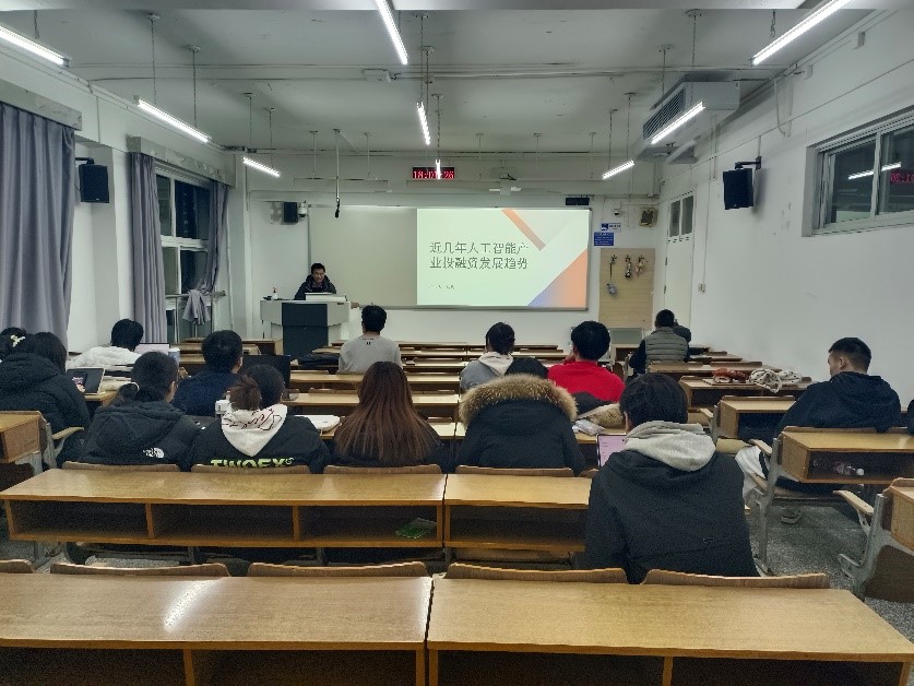12月10日晚上,应pa电子官方网站邀请,山西证券格林大华期货有限公司资产管理部基金经理马兵先生来校进行了《产业经济学》课程产教融合讲座,在励学楼308教室为金融22-12、国22年级的学生作了题为“人工智能产业投融资发展趋势”的学术报告。