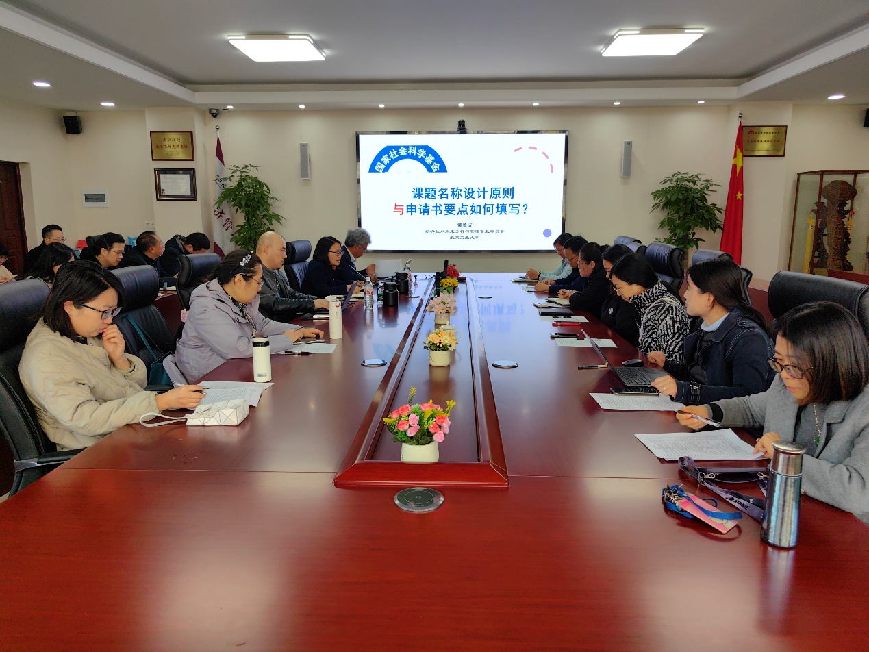 为切实做好学院2025年度社科基金项目申报工作,推动申报课题质量提升,11月6日下午,pa电子官方网站在励学楼201会议室召开励学沙龙第八期学习交流活动。北京工业大学经济与管理学院博士生导师、国家哲学社会科学学科规划评审组专家黄鲁成教授应邀为老师们做社科基金课题选题的指导。学院30余位教师参加此次励学沙龙,活动由蒋贵凰副院长主持。