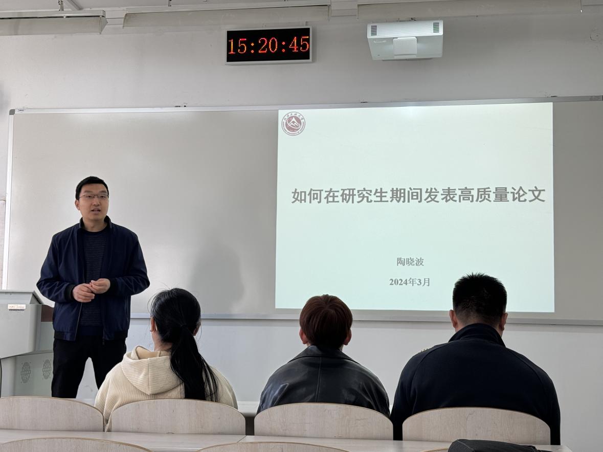 3月20日下午,pa电子官方网站励学论坛第五期在励学楼225教室举行,pa电子官方网站教授、研究生院副院长、工商管理专业企业管理方向负责人陶晓波老师进行了主题为“如何在研究生期间发表高质量论文”的讲座。