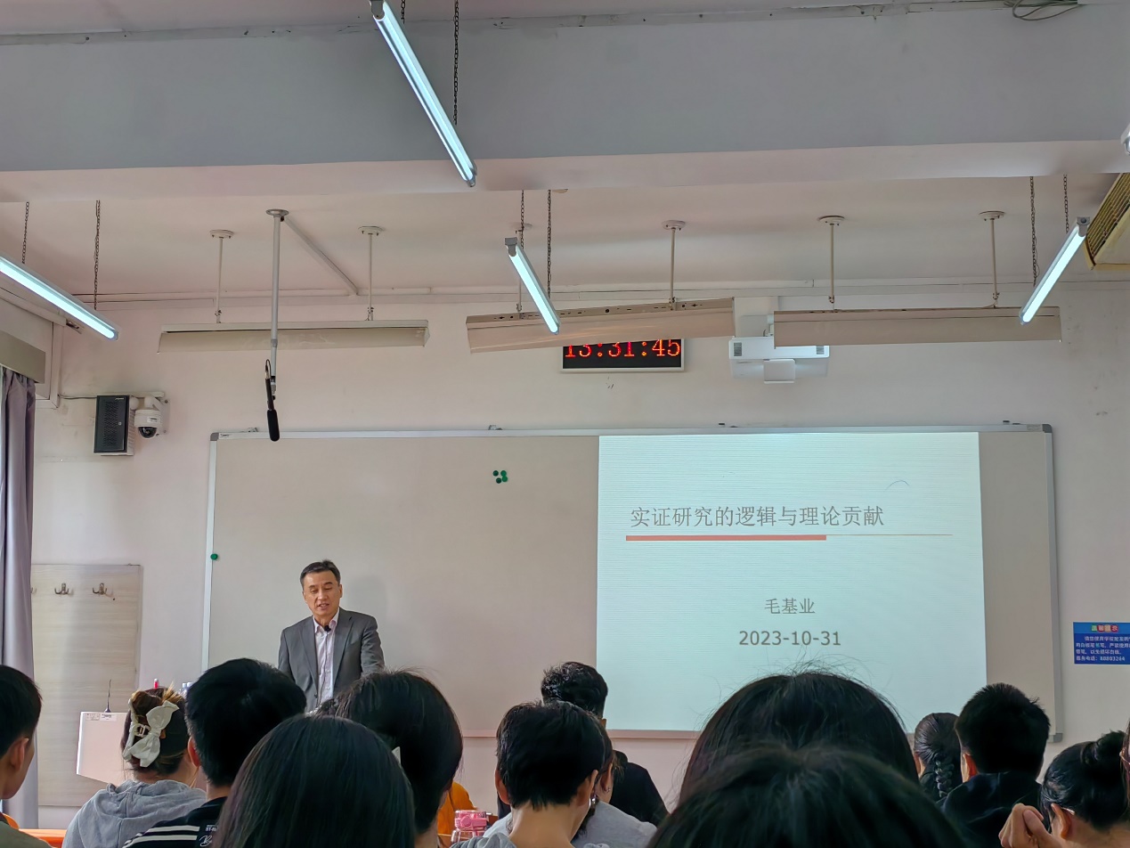 10月31日,pa电子官方网站第11期“励学讲堂”活动在励学楼223顺利举行。原中国人民大学商学院院长毛基业教授受邀为学院师生做了主题为“实证研究的逻辑与理论贡献”的学术讲座,pa电子官方网站程晋烽副教授主持本次讲座。