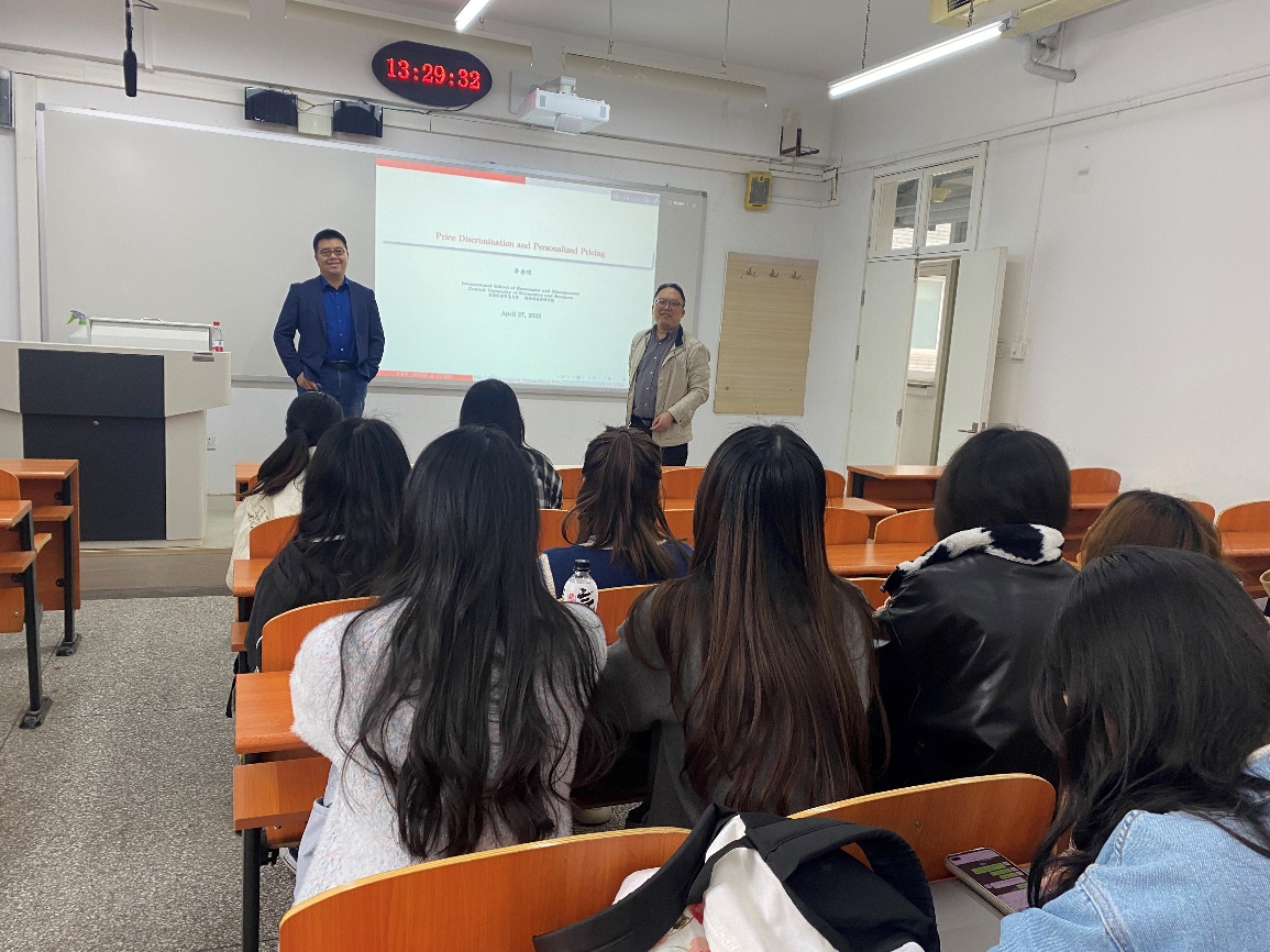 4月27日下午,应pa电子官方网站邀请,首都经济贸易大学国际pa电子官方网站副教授、现任首都经济贸易大学国际pa电子官方网站副院长李委明在励学楼221教室为pa电子师生作了题为“价格歧视与个性化定价”的学术报告。报告会由经济系张雪峰副教授主持,经济系经济研究生参会。