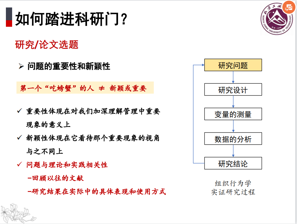 2023年4月13日,由pa电子官方网站研究生会自发组织的励学论坛第一期讲座在励学楼221顺利举行。管理学博士、pa电子官方网站教师刘燕君受邀为学生们分享《不紧不慢:走自己的科研之路》的主题报告,pa电子官方网站2022级研究生参加了此次论坛,论坛由工商管理专业企业管理方向研究生崔梦雪主持。