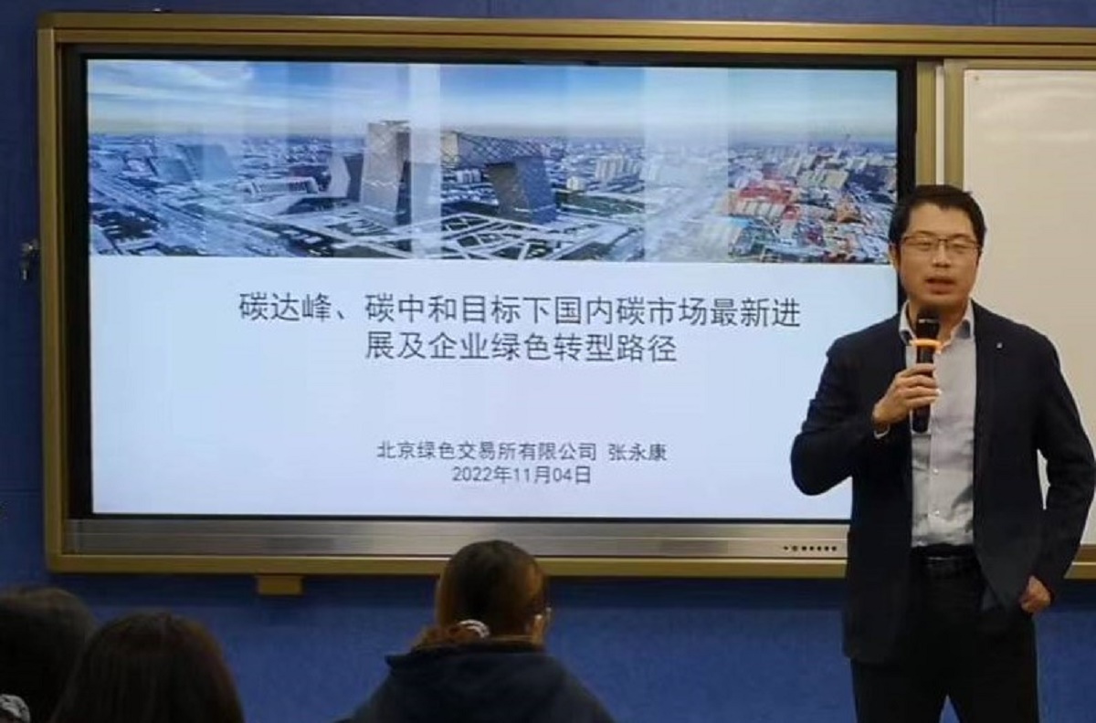 11月4日下午,pa电子官方网站在励学楼135举行第4期“励学讲堂”活动。北京绿色交易所绿色发展中心主任张永康受邀为会计系师生做了题为“碳达峰、碳中和目标下国内碳市场最新进展及企业绿色转型路径”的学术报告。讲座由会计系主任王志亮教授主持。
