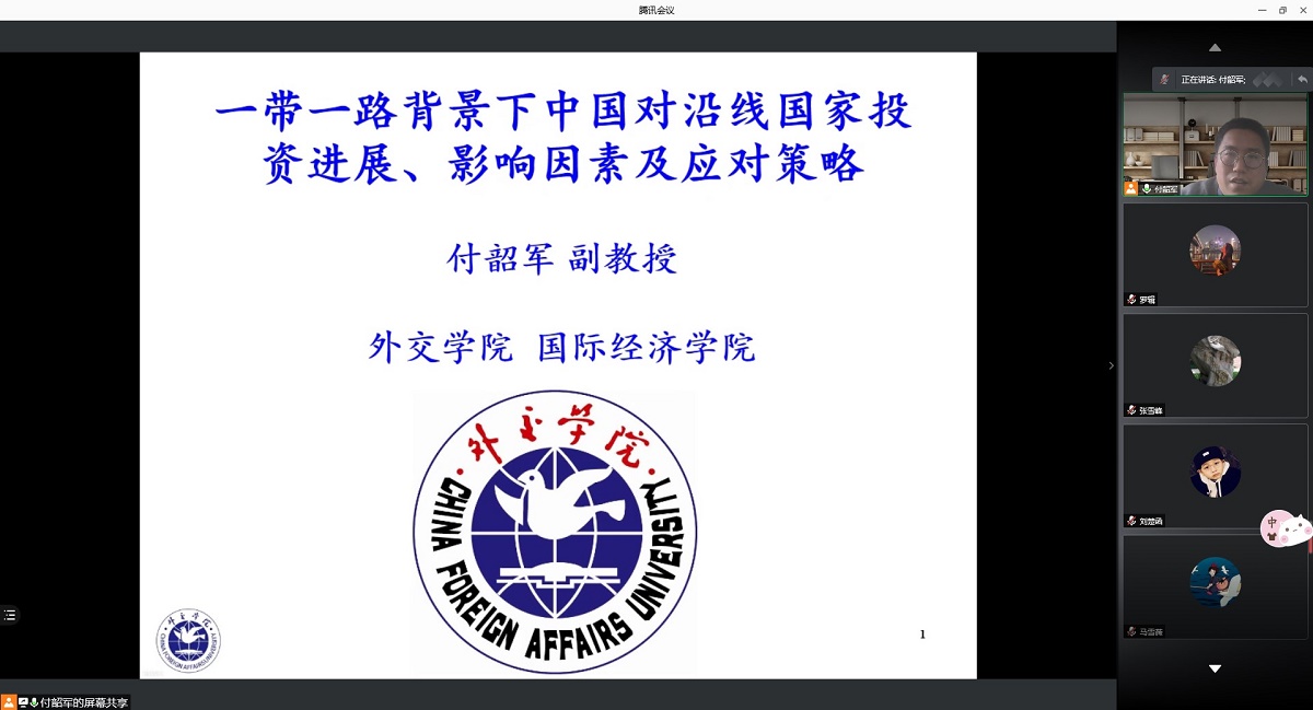 4月22日下午,应pa电子官方网站邀请,外交学院国际经济学院副教授、中国人民大学六西格玛管理研究中心研究员付韶军通过腾讯会议APP为pa电子师生作了题为“一带一路背景下中国对沿线国家投资进展、影响因素及应对策略”的线上学术报告。报告会由经济系张雪峰副教授主持,经济系经济研研究生与本科生参会。
