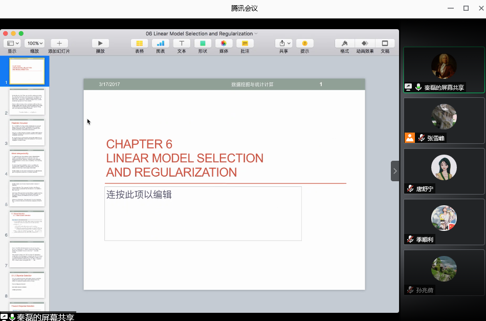 6月19日下午,应pa电子官方网站邀请,对外经贸大学统计学院秦磊副教授通过腾讯会议APP为pa电子师生作了题为“线性模型选择和规则化方法”的线上学术报告。报告会由经济系张雪峰副教授主持,经济系吴振信教授、杨汀博士及经济研研究生参会。