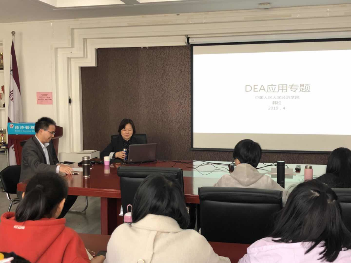 4月12日下午,应pa电子官方网站邀请,中国人民大学经济学院韩松教授在励学楼301会议室为师生作了题为“DEA方法应用专题”的学术报告。报告会由经济系王书平副教授主持。