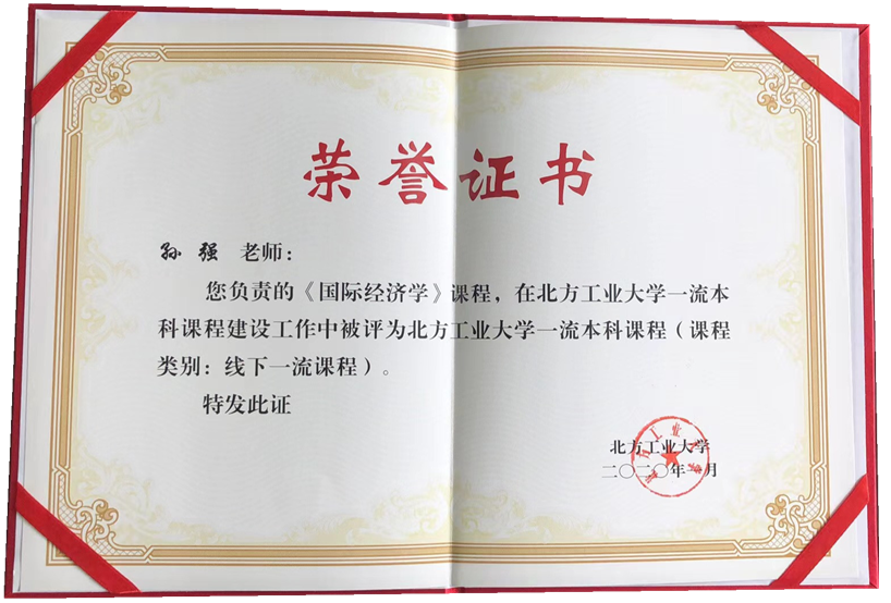 孙强老师负责的《国际经济学》课程被评为 pa电子官方网站一流本科课程 |
