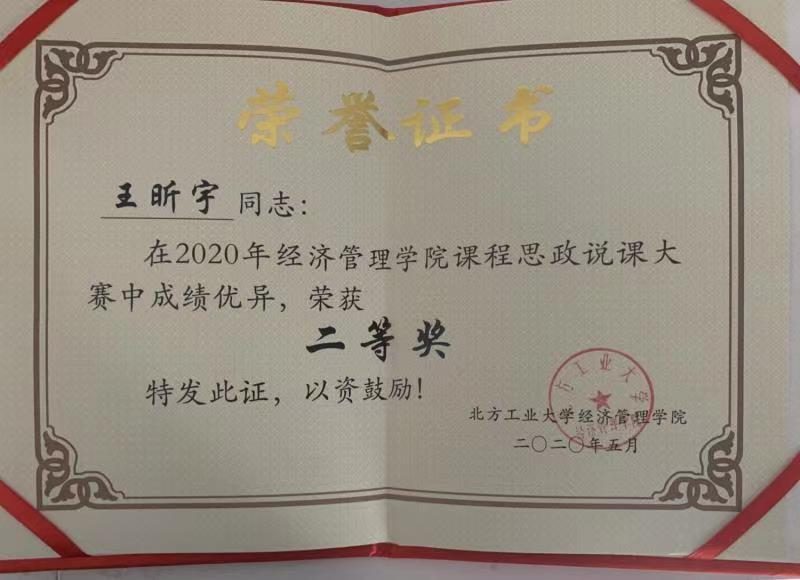 王昕宇老师在2020年pa电子官方网站课程思政说课大赛中 荣获二等奖 |