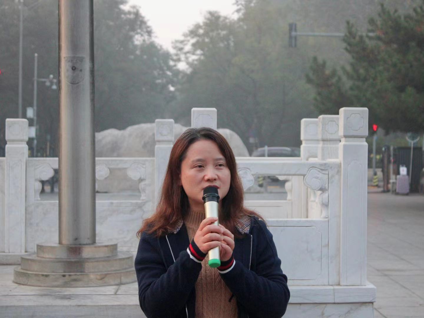 在全体师生的注目下,国旗班队员们迈着整齐划一的步伐,喊着激昂洪亮的口号,护送鲜艳的五星红旗进场。伴随着《义勇军进行曲》,五星红旗冉冉升起,全体师生行注目礼,庄严肃穆。
