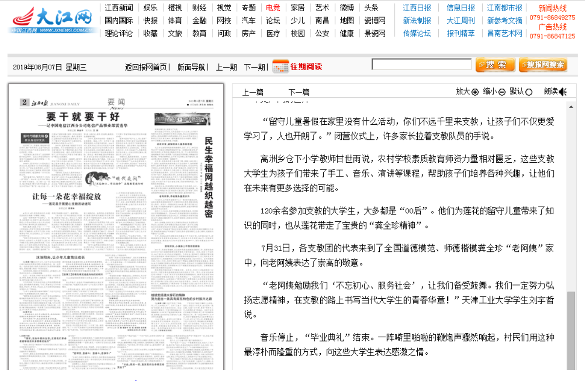 本次支教活动也被中国文明网,江西日报数字报,以及中青网(三下乡官网)等媒体大力报道。