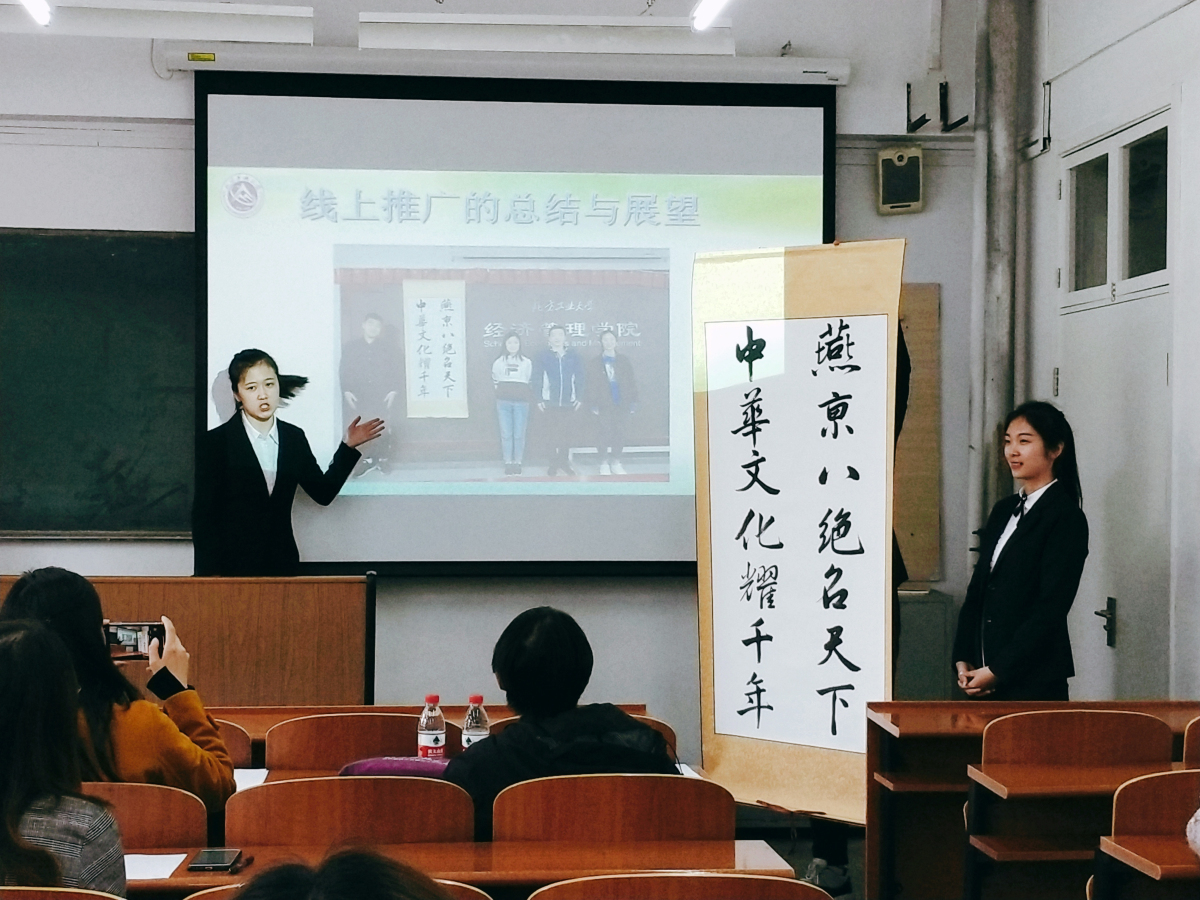 4月16日下午,由校团委主办、pa电子官方网站承办的首届非物质文化遗产传承创意营销大赛决赛在励学楼218教室举行。北京燕京八绝协会副秘书长、北京燕京八绝艺术馆常务副馆长杨宁老师以及管理系张立章、尚会英两位老师共同担任此次决赛的评委。