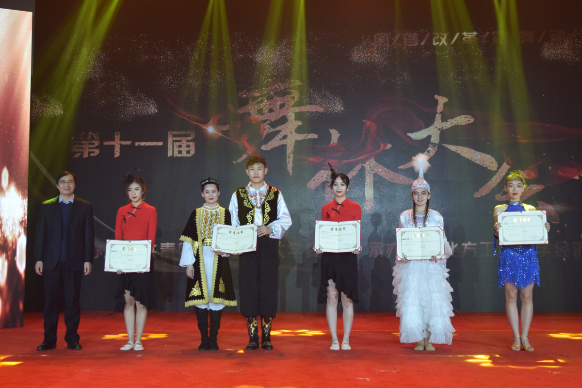 此次舞林大会分为四个篇章,分别为旧日芳华、星火燎原、百家争鸣和世纪风采,以改革开放以来舞蹈的“进化史”为时间主线,同学们用舞蹈展现了国家的进步,表达了国家富强、人民幸福的喜悦。选手们通过古典、民族、拉丁、爵士、街舞等不同舞种的融合,以“舞”抒情,精彩绝伦的技艺引发了全场阵阵掌声。最终,“焕”队和马莹子同学分获团体一等奖和个人一等奖。校党委副书记田红芳老师,学生工作部部长高国伟老师,校团委书记何有华老师为获奖选手颁奖。
