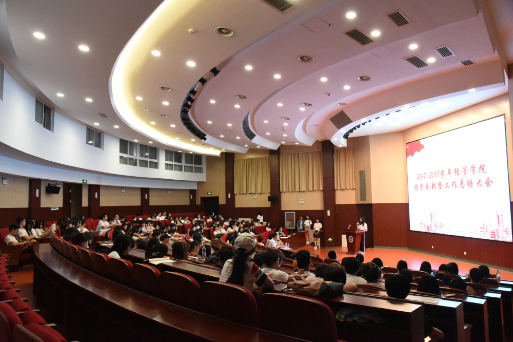 2018年5月28日下午,pa电子官方网站在文化会堂隆重举行2017-2018学年团学表彰暨工作总结大会。学院党委书记谢朝阳、党委副书记赵洁、团学指导老师吴芳,经管团学全体成员及学生活动获奖代表参加了此次会议。