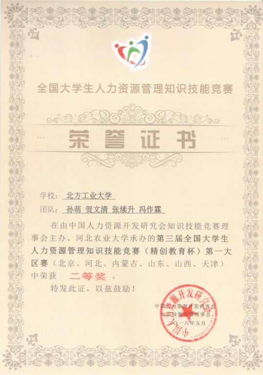 5月5日至6日,在工商管理系魏秀丽、付艳荣和罗文豪老师的组织指导下,我院工商管理专业15级和16级孙萌、贺文清、张旭升、冯作霖四位同学组成“Holly Right”团队,首次代表pa电子官方网站参加第三届全国大学生人力资源管理知识技能竞赛第一大区赛。该比赛由中国人力资源开发研究会主办,为全国性重要赛事,吸引了近300高校队伍参赛,包括分区赛和总决赛两个阶段。