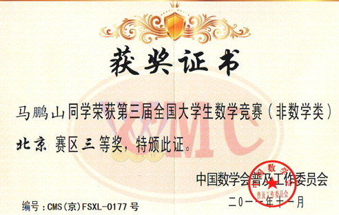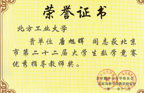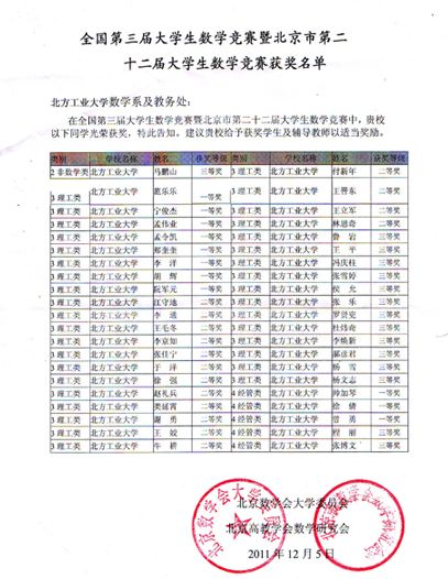 近日,全国第三届大学生数学竞赛暨北京市第二十二届大学生数学竞赛颁奖会在北京邮电大学举行,pa电子共有42名学生获奖,获奖人数仅次于北京大学、北京邮电大学、北京航空航天大学、北京科技大学,位居第五位。同时,pa电子还获得优秀组织奖,唐旭晖老师获得优秀指导教师奖。