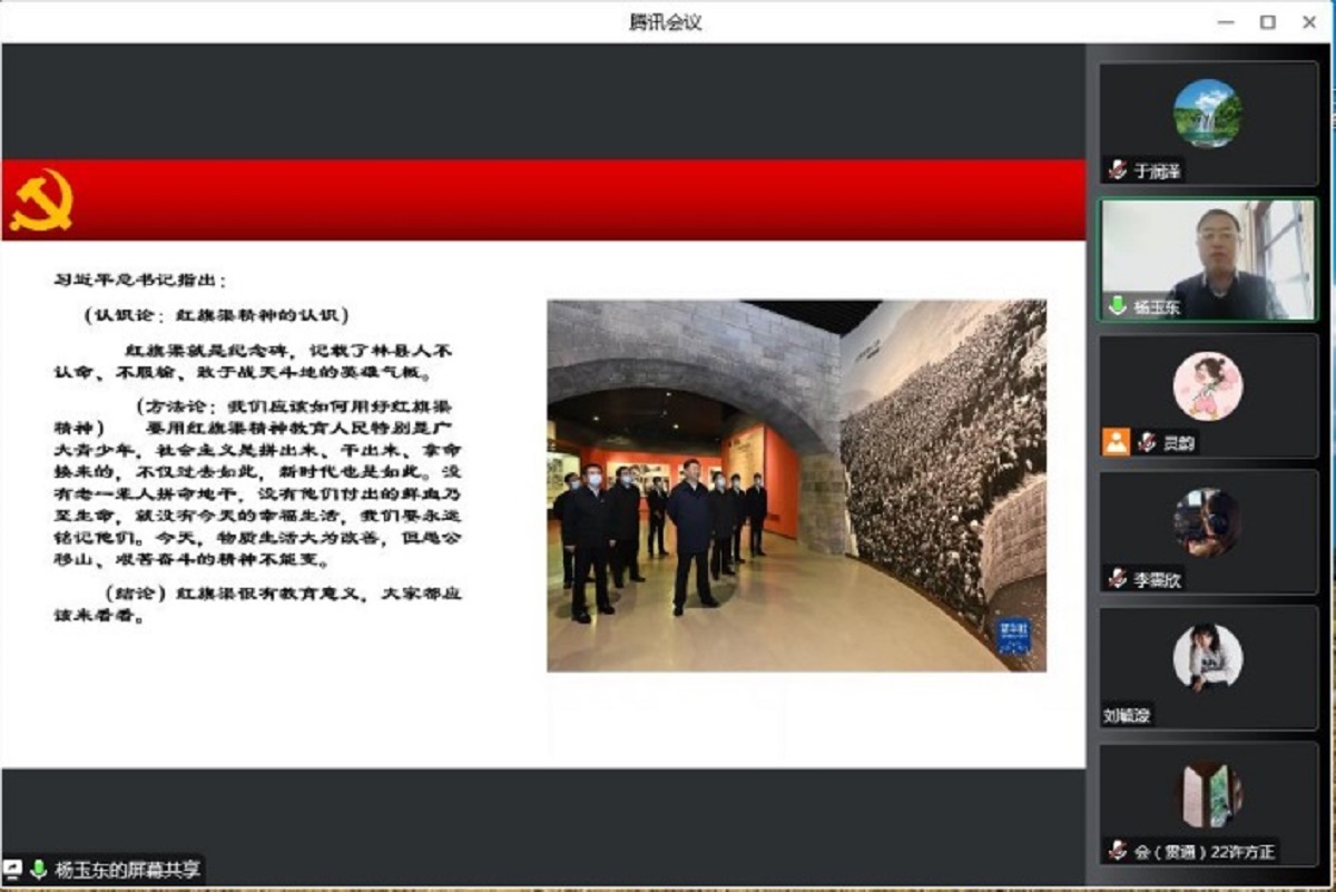 为深入学习贯彻习近平新时代中国特色社会主义思想和党的二十大精神,深入学习红旗渠精神,强化学院党员理论水平,12月1日,pa电子官方网站邀请河南省安阳市林州市委宣传部副部长杨玉东同志讲授红旗渠精神专题党课。学院全体师生党员通过腾讯会议线上进行党课学习,会议由学院党委副书记王帏主持。
