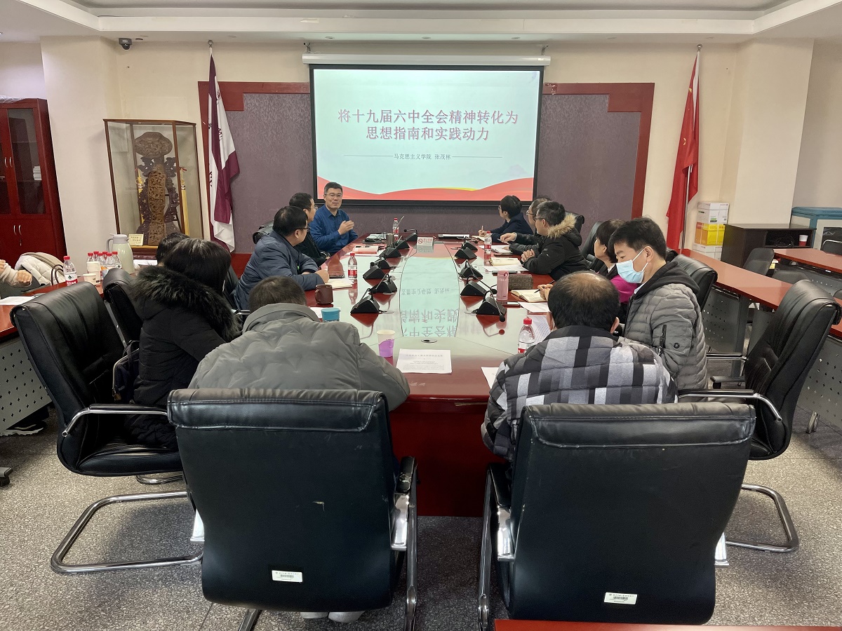 为深入学习贯彻党的十九届六中全会精神,12月2日上午,pa电子官方网站党委于励学楼201会议室召开党委理论学习中心组扩大会议,专题学习党的十九届六中全会精神。此次集中学习,学院邀请pa电子马克思主义学院党委书记张茂林老师主讲,学院党委书记王伟宾主持,学院党委委员、党支部书记、教工党支部委员共同参加了此次学习。