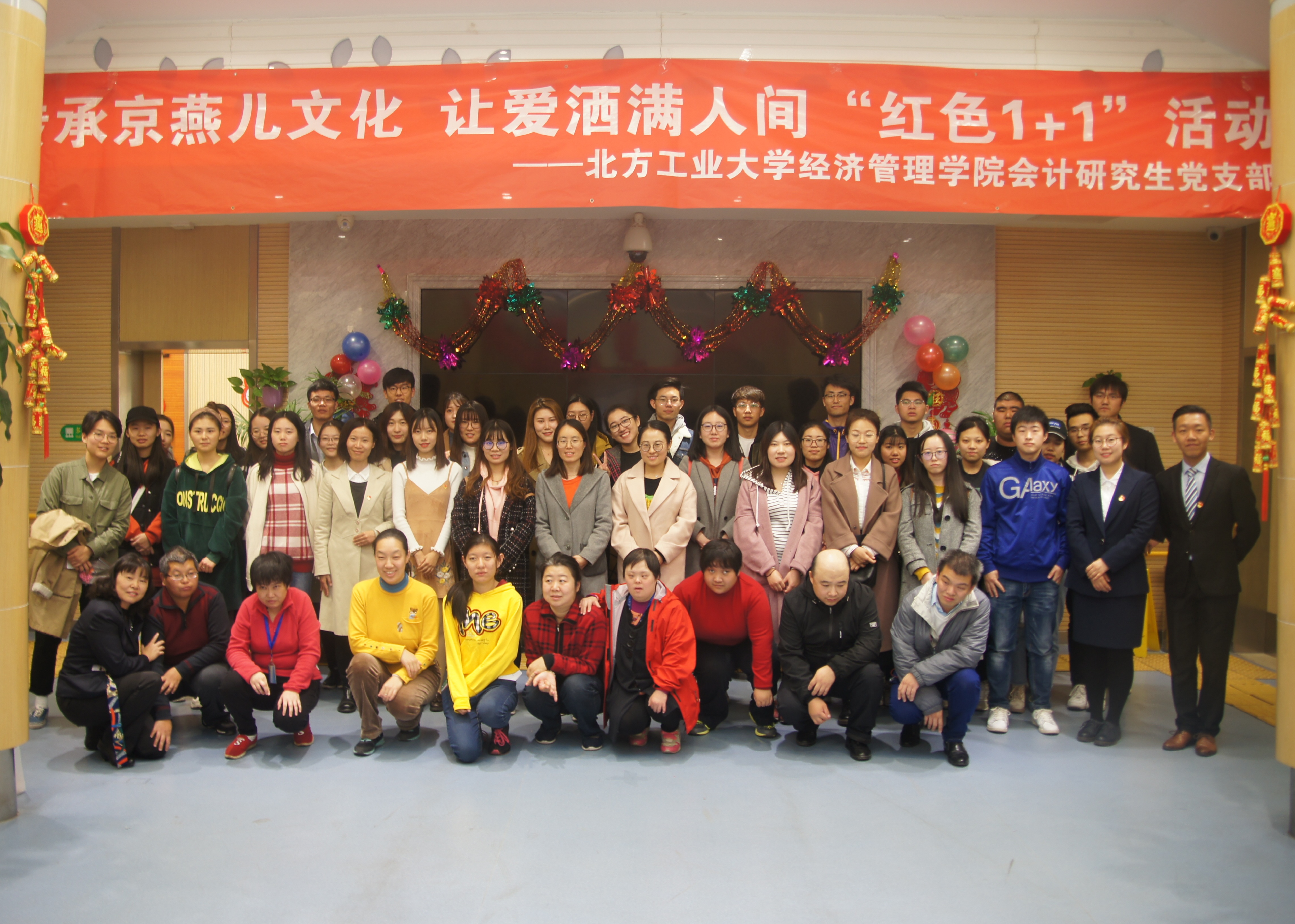 2018年11月1日下午,pa电子官方网站会计研究生党支部赴北京金融街街道残联职康站开展“传承京燕文化,让爱洒满人间”红色1+1活动,来自会计研究生党支部的四十名党员、预备党员和积极分子参与了本次活动。