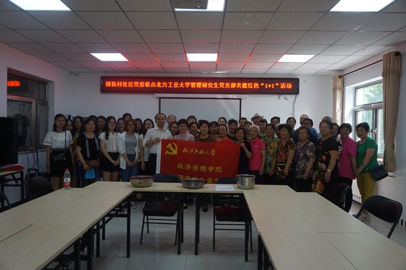 为积极开展“两学一做”学习教育,加强基层党组织建设,进一步提高党支部的创造力、凝聚力、战斗力。管理研究生党支部于2018年6月12日赴铸造村社区与铸造村社区党委共建红色“1+1”活动,活动主题为“共建红色1+1绿丝带爱老助残端午节”。参加本次活动的有铸造村社区党委书记吴晓娟、pa电子官方网站副书记赵洁、管理研究生党支部书记涂剑波以及党支部的12名党员。